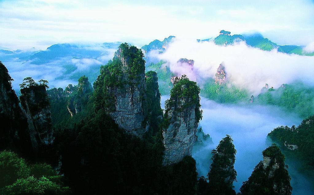 | 下午 | 午餐后游覽“擴(kuò)大的盆景,縮小的仙境”有峰林之王稱號的---天子山景區(qū) (仙女散花、御筆峰、天子閣、云青巖等景點(diǎn)),賀龍公園,十大元帥之一的——賀龍銅像,下山游玩十里畫廊景區(qū)(三姐妹峰、采藥老人、全家福、食指峰、駝駱峰等),乘坐旅游巴士大約50分鐘的車程返回市區(qū),車游“千年古戰(zhàn)場”百丈峽出景區(qū):峽谷因有高近百丈的石壁直插云霄,不敢仰視,故而得名。返回張家界市,天氣晴朗還可車觀“武陵之魂”巍峨天門山、天門洞。入住酒店自由活動。入住酒店后當(dāng)天旅游行程結(jié)束,到次日早餐前為自由活動期,請游客注意自身安全。 |